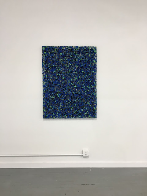 Once the paintings were moved into the gallery, Jeffrey sat about hanging the show and did so within ten minutes, the guy knows how to hang an exhibition and he doesn't mess around with unneeded things. We changed one painting wall for another since the Green and Blue (07-04-2019) painting was originally on the wall of the red paintings.
